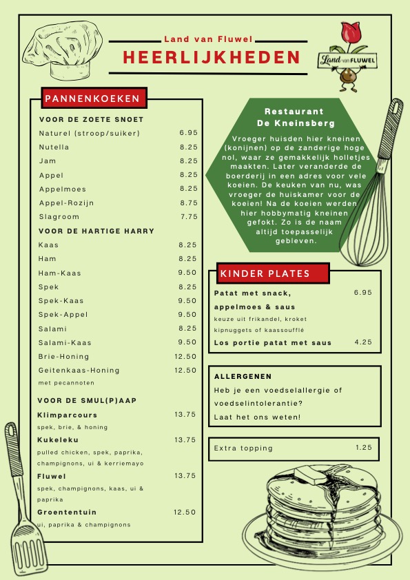 Tijd voor een aangename pauze? We verwennen je graag in ons Pannenkoekenhuis of op het terras met verschillende soorten pannenkoeken. Het pannenkoekenhuis is onderdeel van Restaurant ‘De Kneinsberg’.