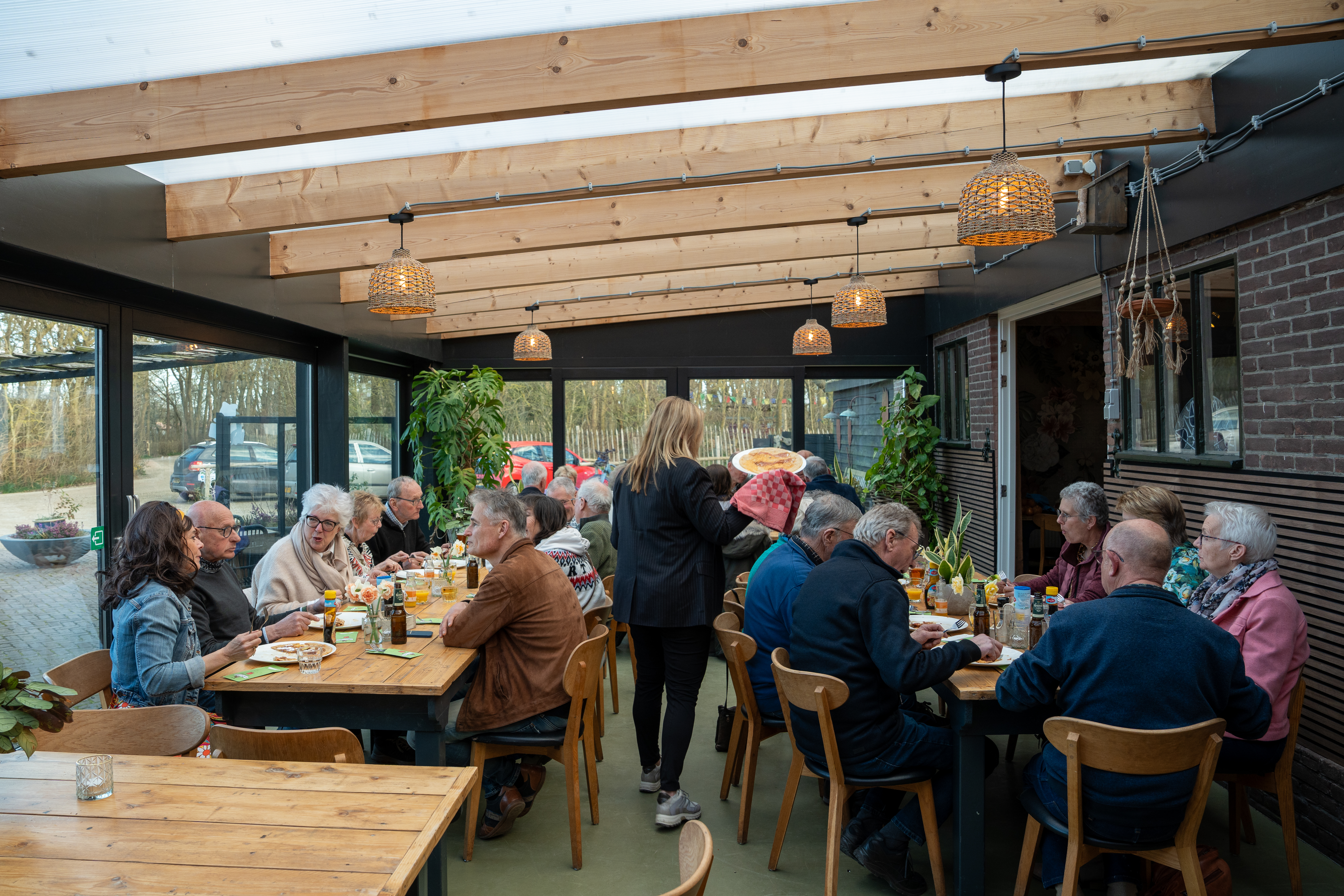 Neem plaats op het zonnige terras of zoek een gezellig plekje in de oude stolpboerderij en laat je verwennen.